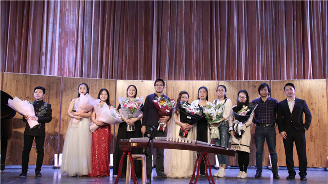 4月4日晚,2014级器乐表演专业员工熊红在实训大楼多功能厅举办个人古筝毕业音乐会。学院领导、部分师生,熊红的亲友等到场聆听了音乐会。