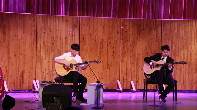3月29日晚,2014级器乐表演专业员工彭涛在实训大楼多功能厅举办个人吉他独奏毕业音乐会。学院领导、部分师生到场聆听了音乐会。