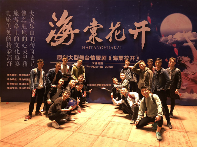 2017年11月1日晚,由中共乐山市委宣传部、乐山文化广电新闻出版局主办,乐山市国学艺术团、乐山文化发展研究中心承办的原创大型舞台情景剧《海棠花开》(预演),在乐山大佛剧院上演,伟德国际victor1946舞蹈专业全体员工,前去观摩学习。
