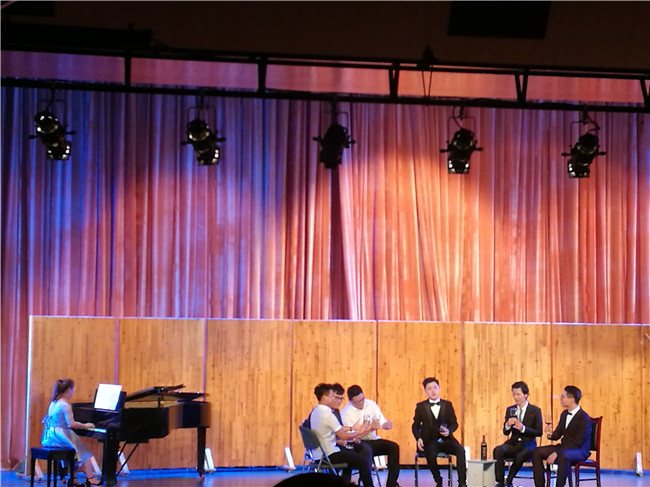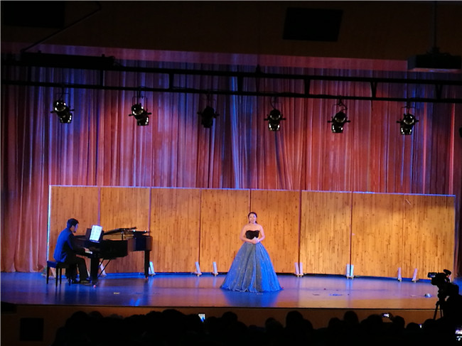 音乐会由杨平带来的《围绕着我崇拜的人儿》拉开了序幕,经典流行歌曲《妈妈》用简单的歌词歌颂了母亲的伟大;张翼深情演唱的《我亲爱的爸爸》旋律优美,充分表现了歌剧《贾尼•斯基基》中劳蕾塔这一人物的内心情感;《天神赐粮》则充满了宗教气息,表达了对天神的赞颂之情。《你就会看到》、《年轻姑娘应该懂得》、《美妙时刻即将来临》等歌曲以演唱和表演相结合的形式,将经典的人物形象演绎得活灵活现。音乐会最后在全体参演师生演唱的《我的太阳》中落下帷幕。本次音乐会,张翼师生一共为大家带来了15个精彩节目,每首曲目后,现场都响起了热烈的掌声。音乐会结束后,嘉宾上台与张翼师生合影留念。