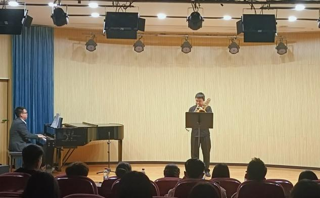 3月28日,2018级音乐表演员工高猛在邦泰举办个人器乐毕业音乐会,学院部分师生,高猛亲友等到场聆听了音乐会。