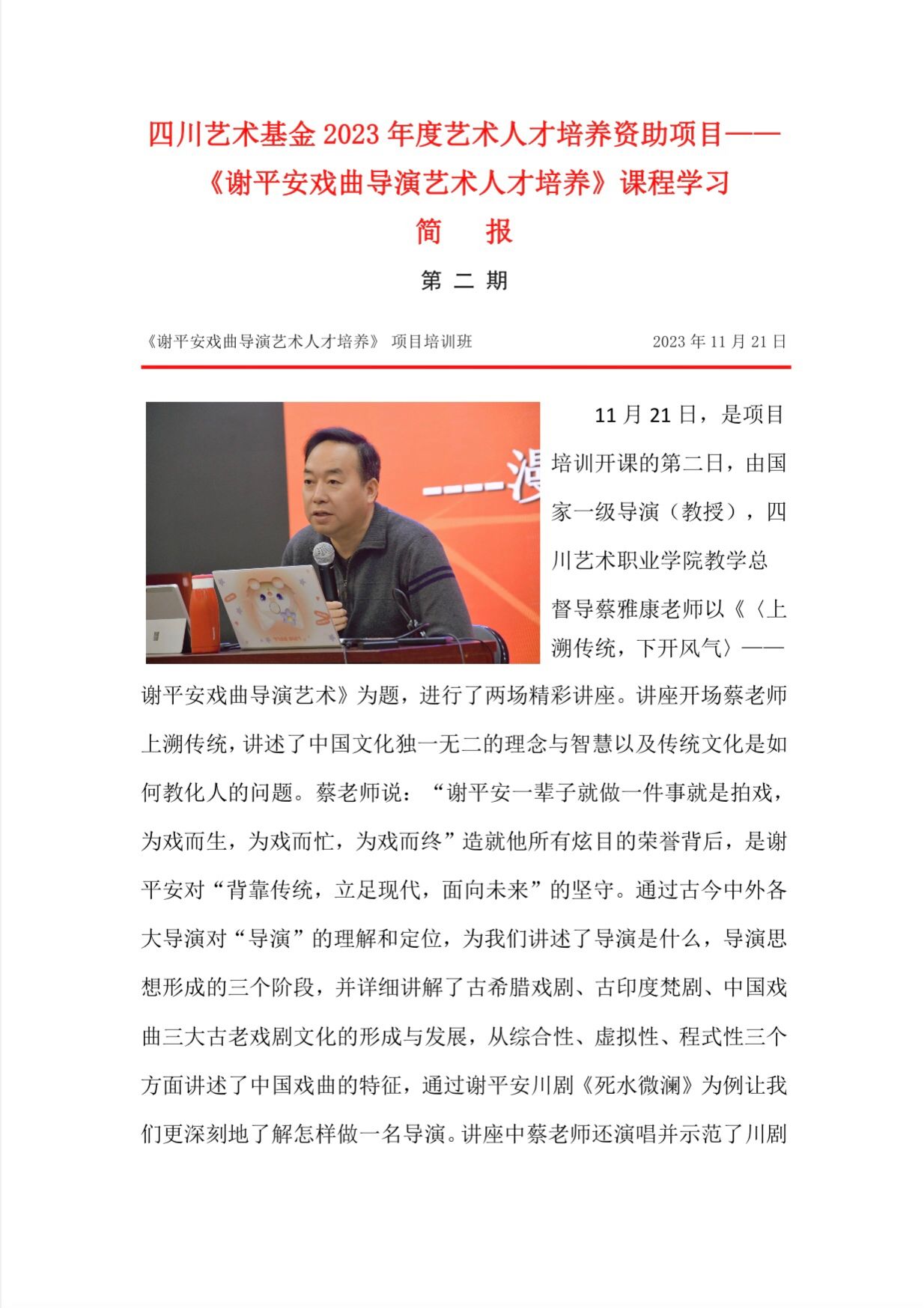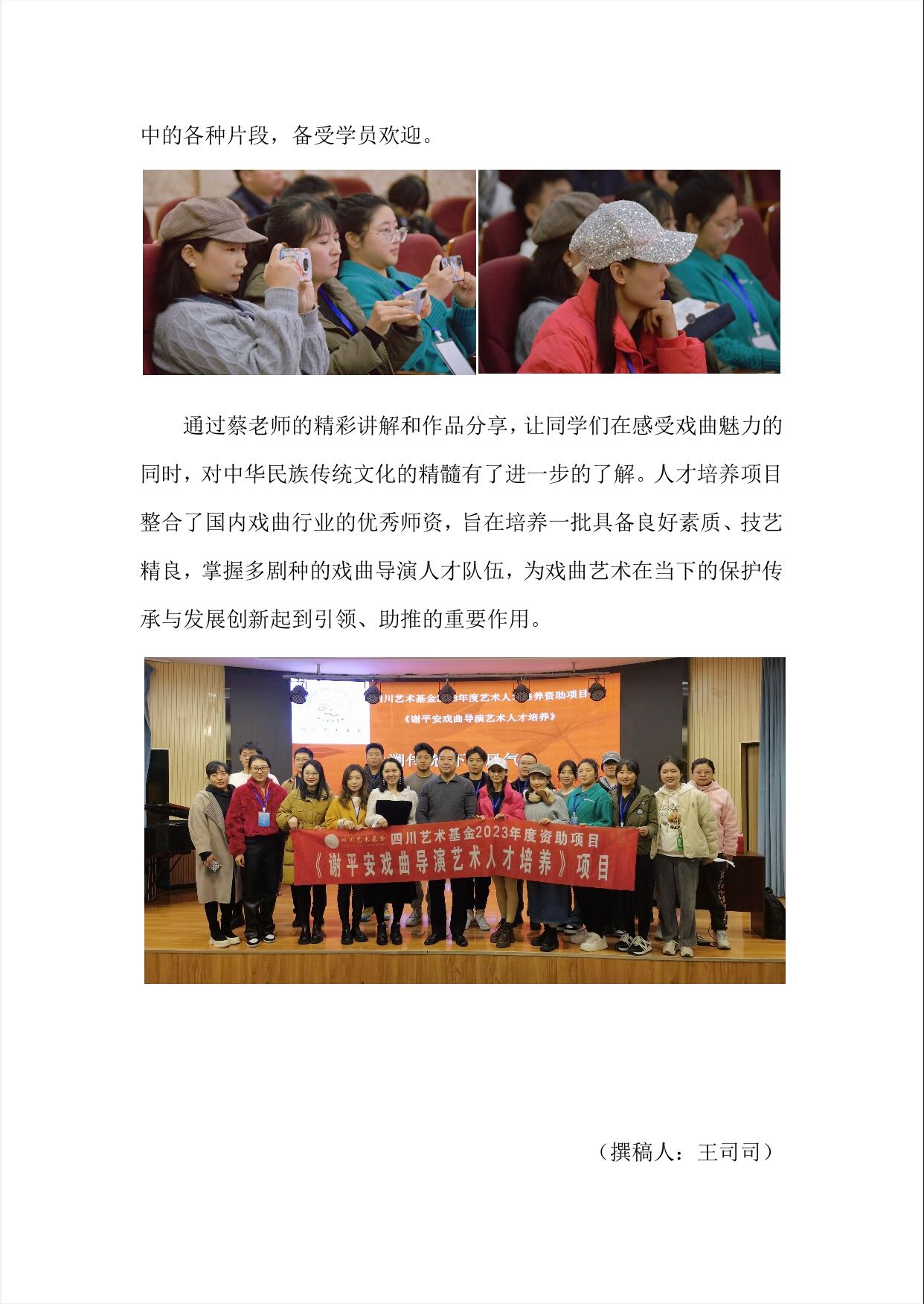 四川艺术基金2023年度艺术人才培养资助项目——《谢平安戏曲导演艺术人才培养》课程学习简报(二)