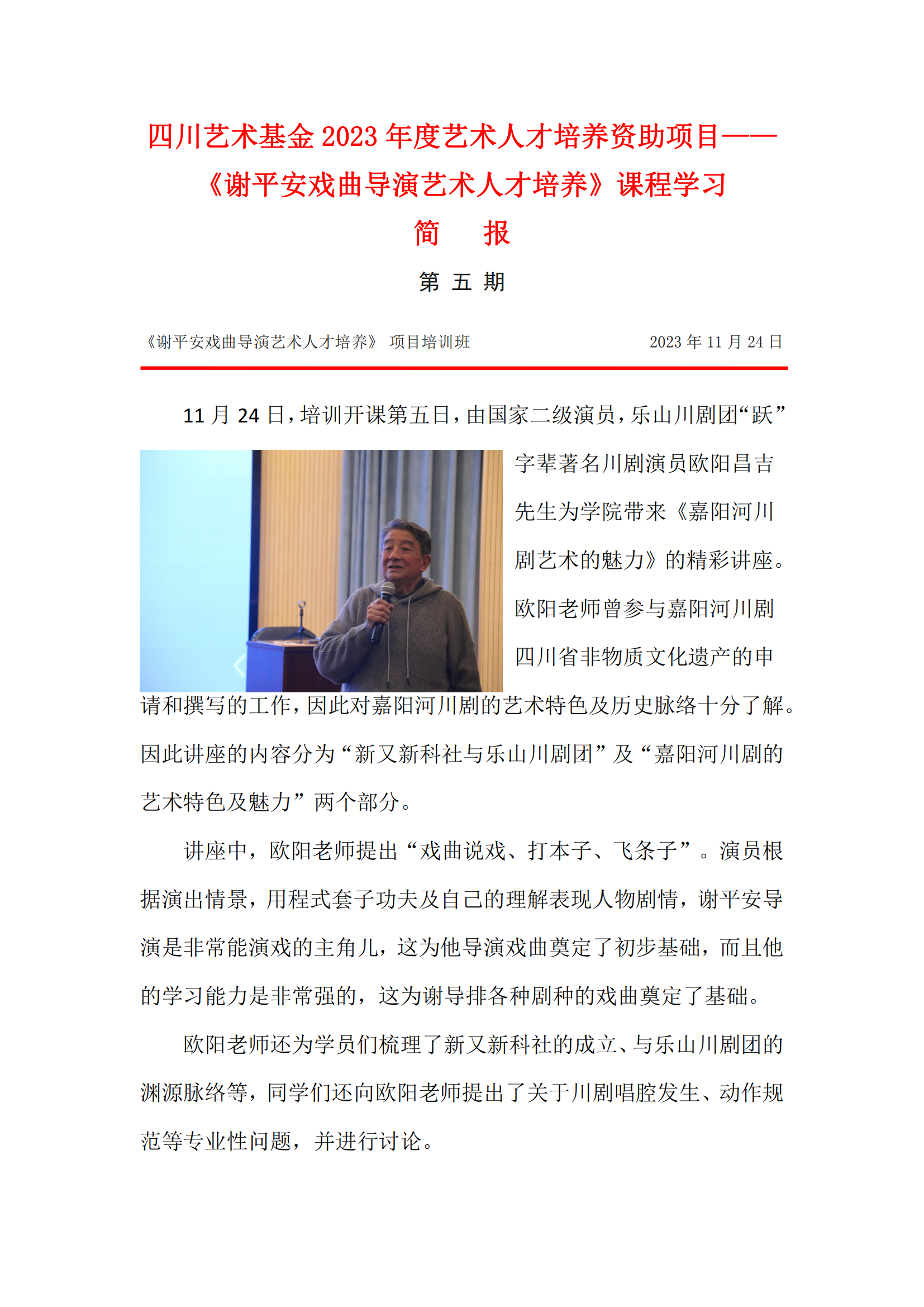 四川艺术基金2023年度艺术人才培养资助项目——《谢平安戏曲导演艺术人才培养》课程学习简报(五)