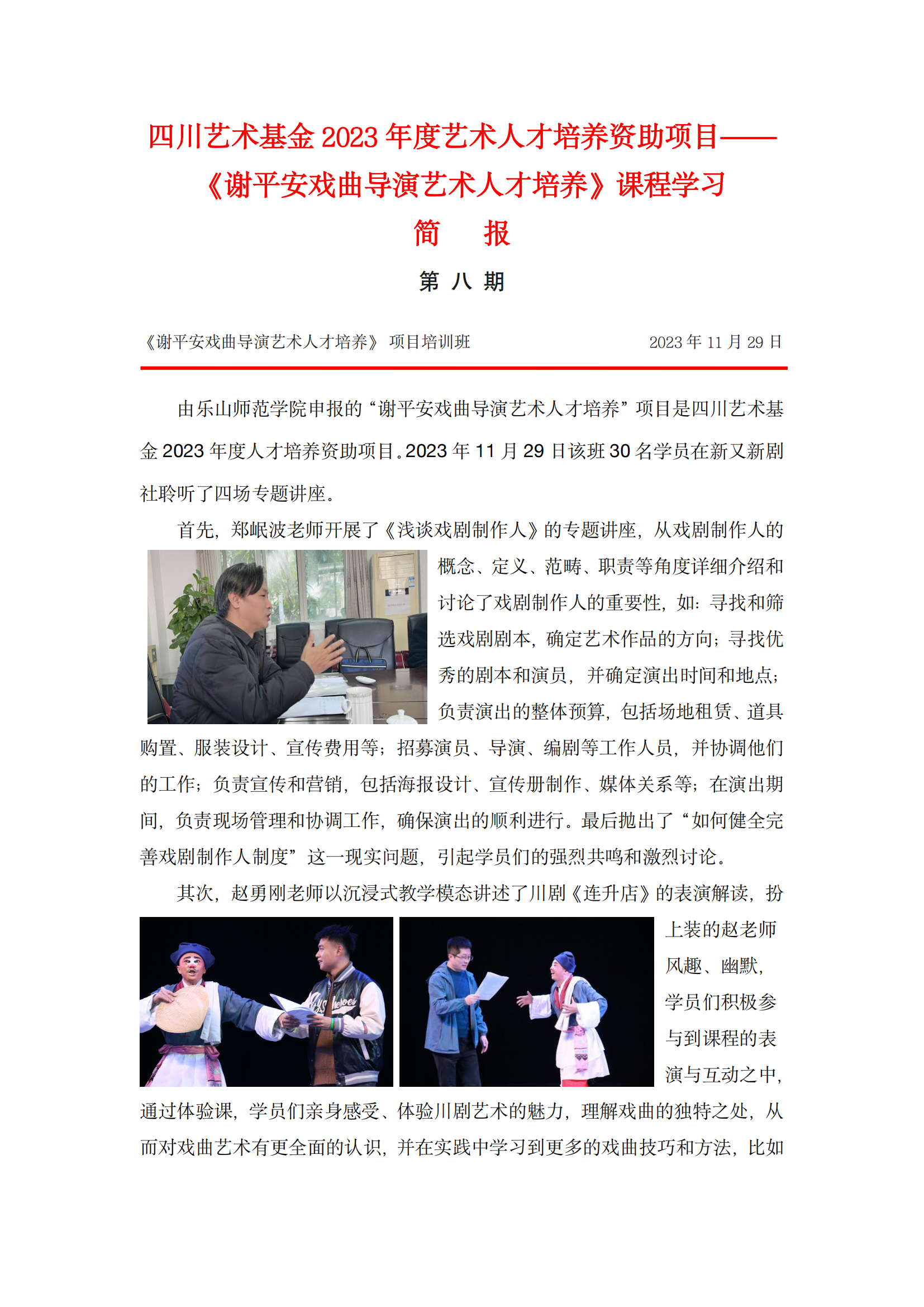 四川艺术基金2023年度艺术人才培养资助项目——《谢平安戏曲导演艺术人才培养》课程学习简报(八)
