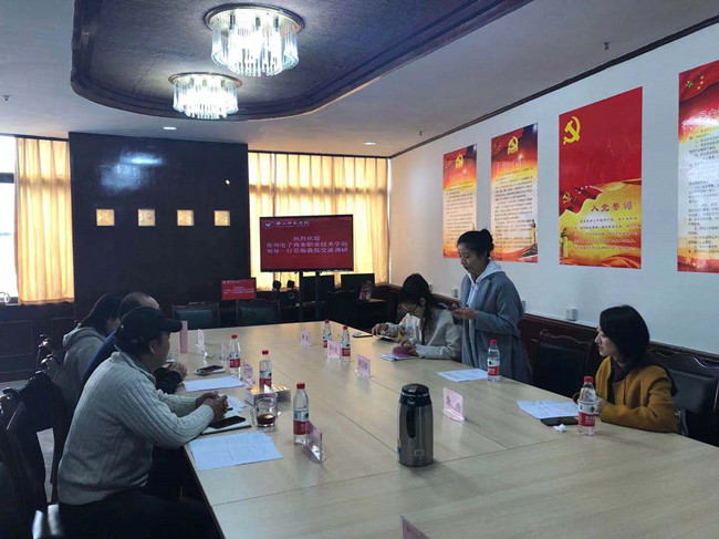2019年11月10日贵州电子商务职业技术学院领导和老师来伟德国际victor1946调研交流。伟德国际victor1946周特古斯经理,吴洋副经理,器乐教研室主任胡凌雅,王宇博士参加了此次交流。