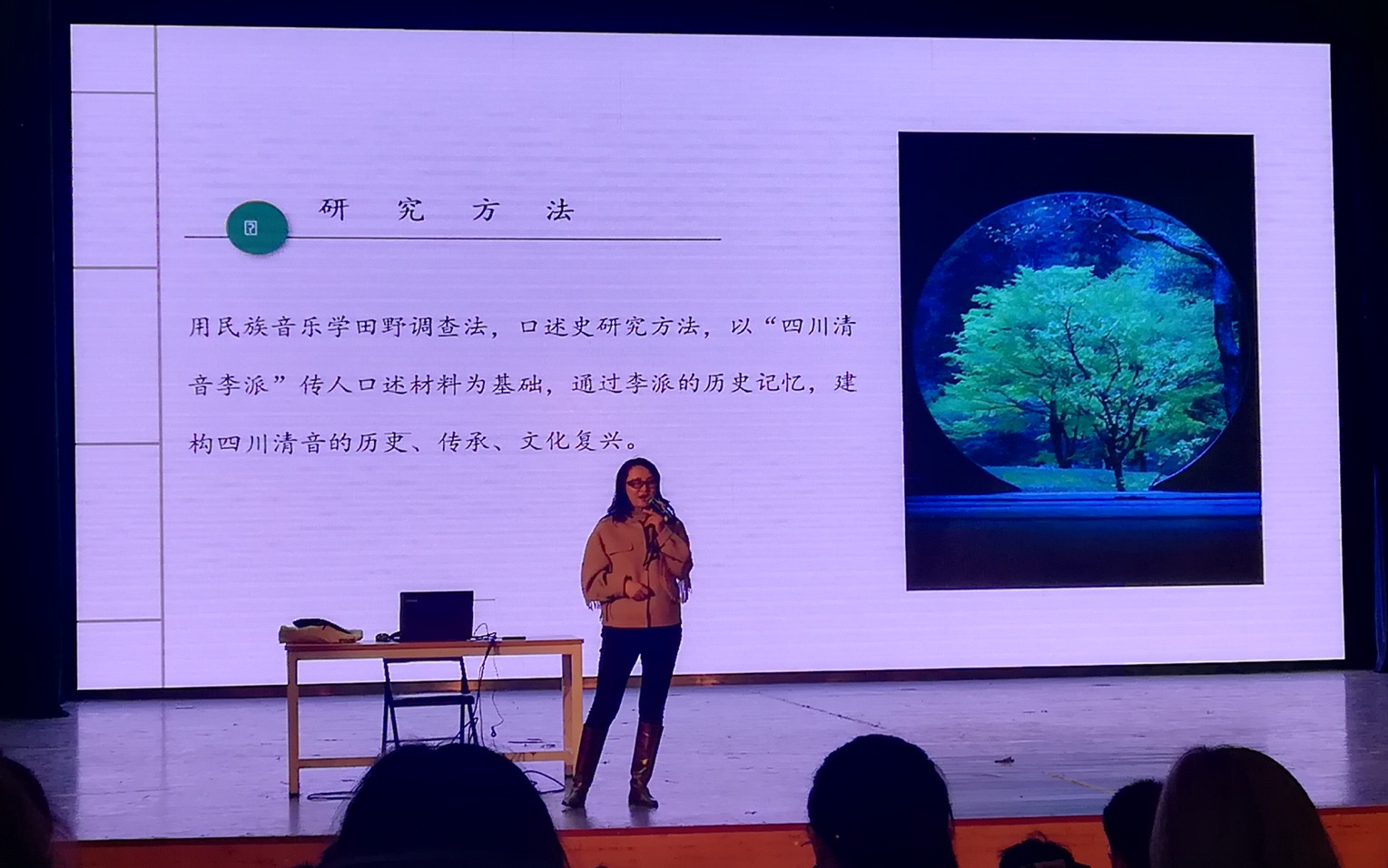 今天是公司实践周第一天,陈缨老师带我们了解了四川清音“李派”的历史记忆。四川清音是四川曲艺的代表性曲种,四川地区汉族的说唱音乐中以唱为主的传统音乐,至今已有300多年的历史,2008年列入国家级非物质文化遗产。在讲座中,陈老师带我们欣赏了多部代表性的作品,如《布谷鸟儿咕咕叫》,其中最吸引同学们的是国家一级演员任平所演唱的带有摇滚色彩的《布谷鸟儿咕咕叫》。同学们随着音乐律动的反应使陈老师更加意识到,优秀传统文化要与现代音乐元素相结合才能更好的传播优秀传统文化。在简单的讲授完清音的历史发展后,陈老师给我们介绍了清音研究的方法。用民族音乐学田野调查法,口述史研究方法,以“四川清音李派”传人口述材料为基础,通过李派的历史记忆,建构四川清音的历史、传承、文化复兴。