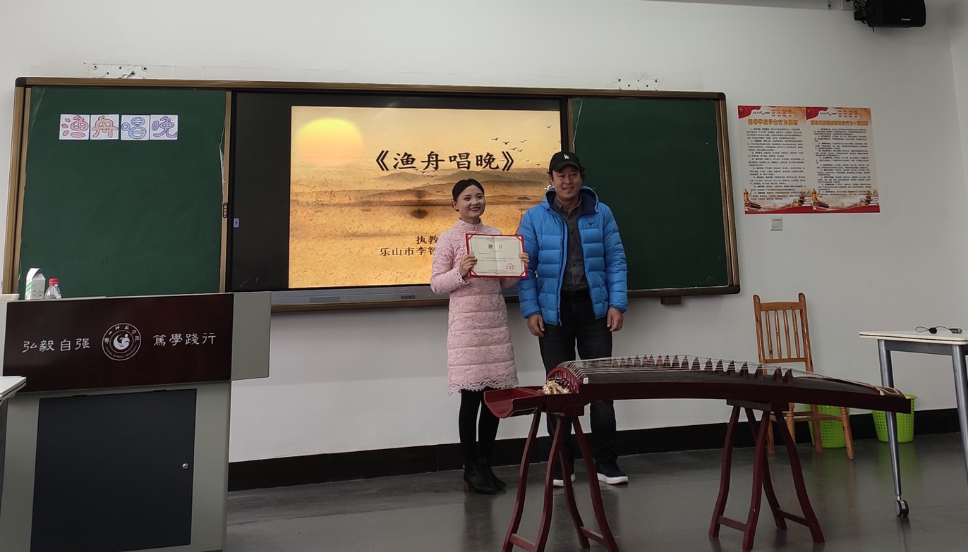张老师选择《渔舟唱晚》进行教学,并且用古筝进行演奏示范,意在带领员工了解民族乐器、培养员工鉴赏民族音乐的能力和兴趣。在课后张老师与同学交流了设计微课的注意事项。