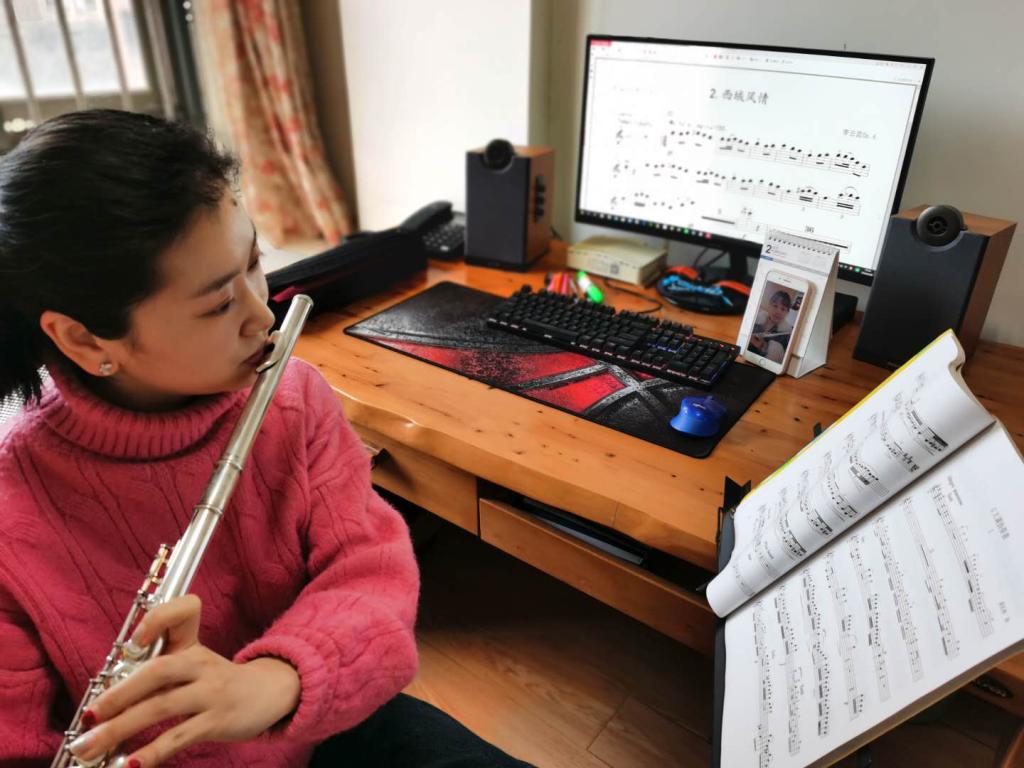面对网上授课初期将会出现的员工厌学、宅家无人监督等现象,特地提前开课一周利用适度奖励政策鼓励员工来到工作室“打卡”学习,老师们称其为“热身练习”。于是,正式开启的第一周合奏课水到渠成、有条不紊地进行着,作业提交率达90%以上(少数由于网络问题未能按时提交),声部学习出勤率达100%。