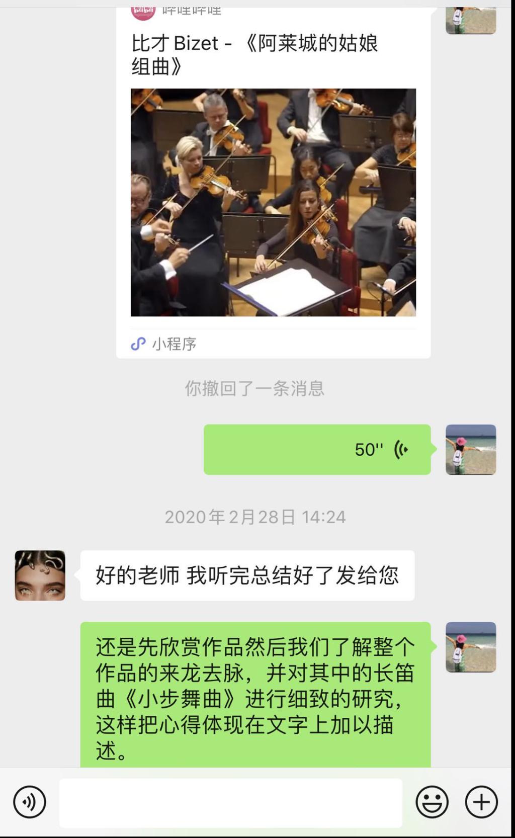 课程中还有少数同学由于地域、网络、未带学习使用的乐器而不能进行正常的线上实践课的演奏。老师们想到采用另一种开课形式供此类员工学习。开设“线上器乐赏析-理论课程”大大方便了员工们在家中也能通过教师的引导欣赏经典交响乐作品。并可以通过教师讲解领略艺术家风采、学习顶尖乐团的专业素养与演绎。课程对所有乐团员工开放,在演奏间歇员工可补充理论知识的学习,使我们的合奏课程呈现出丰富的多层次、多视角的全方位教学状态。