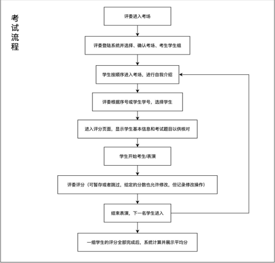 此系统分为两个端口,员工端通过登录微信小程序进行考试顺序抽签。教师端口同样通过登录微信小程序,进行核查所承担的考试场次、时间、地点、考试班级等信息并进行打分。考试结束后,系统自动生成PDF格式以及文档格式两个版本平均考试成绩。数据导出后教务科留存并发送全体教师。