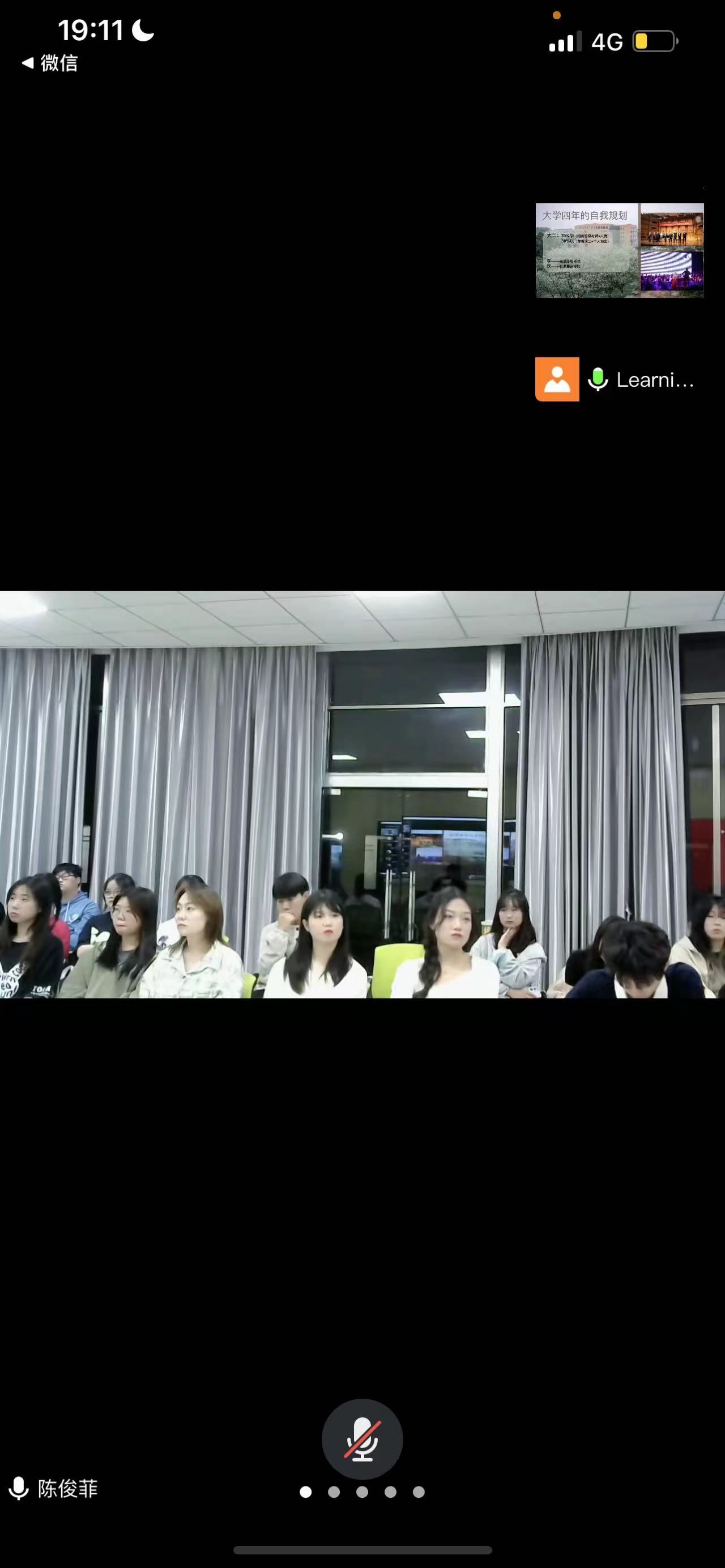 本网讯(文、图/吴映春、熊子杰)10月16日晚7点,22级音表一班主题班会在智慧教室1成功举行。本次班会由代班陈俊菲主持,因疫情原因,部分同学未能按时返校,所以班会采取了线上线下同时进行,让班上每一位同学都能参与到班会中。
