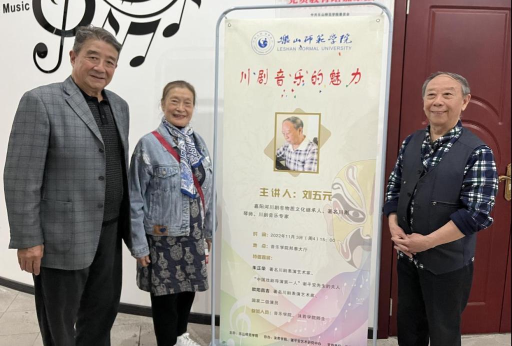 (文、图/吕金株)11月3日,bv伟德国际1946谢平安艺术研究中心、伟德国际victor1946与沫若学院共同在公司邦泰音乐厅举办了《川剧艺术的魅力》讲座。讲座邀请了三位川剧艺术家:四川省级嘉阳河非遗传承人、川剧琴师、作曲家刘五元先生,著名戏曲导演谢平安先生的夫人、著名川剧武旦朱正荣女士,及著名川剧演员欧阳昌吉。三位老艺术家受到公司领导和师生的热烈欢迎,也对谢平安艺术研究中心的创建给与了极高的评价、期待。