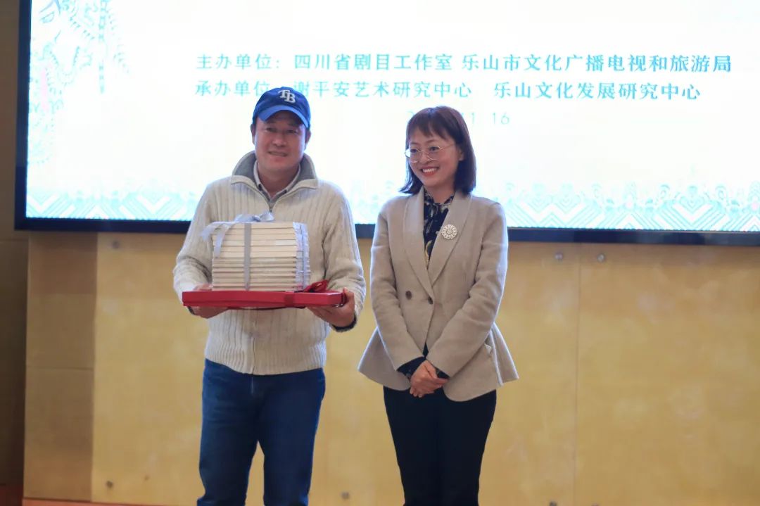 会议伊始,乐山市文化广播电视和旅游局党组书记、局长成冬娟,乐山师范公司党委常委、副校长江滔先后致辞,随后乐山市文化广播电视和旅游局向《谢平安艺术研究中心》赠送研究资料。