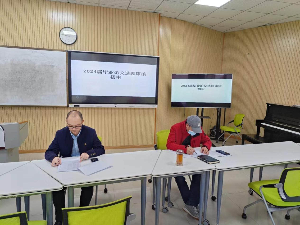 10月26日日下午,伟德国际victor1946在智慧教室对2024届毕业论文选题进行了审核。经理周特古斯,副经理吴洋,经理助理兼钢琴教研室主任李云昆,音乐表演专业负责人吴映春,器乐教研室主任赵然,理论教研室教师王琛博士、扎西东珠博士参加了此次审核工作。