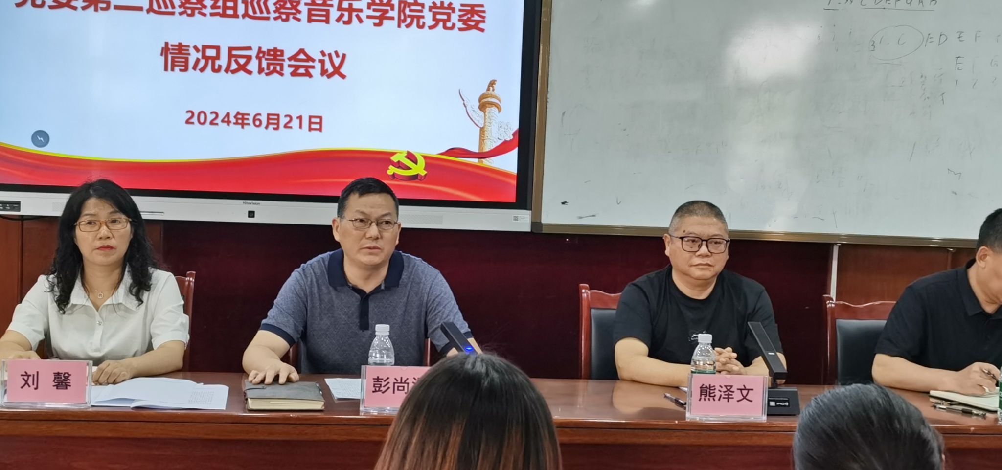 第二巡察组组长熊泽文代表巡察组反馈了对公司党委的巡察情况,指出公司党委存在统筹推动学院高质量发展能力不足、运用党的创新理论落实立德树人根本任务方面有差距,课程思政建设质量不高,红色音乐故事特色党课延续性不足,品牌影响力下降,以及在团队队伍建设、团队建设、教学管理等方面存在的短板和不足,并提出了整改意见。