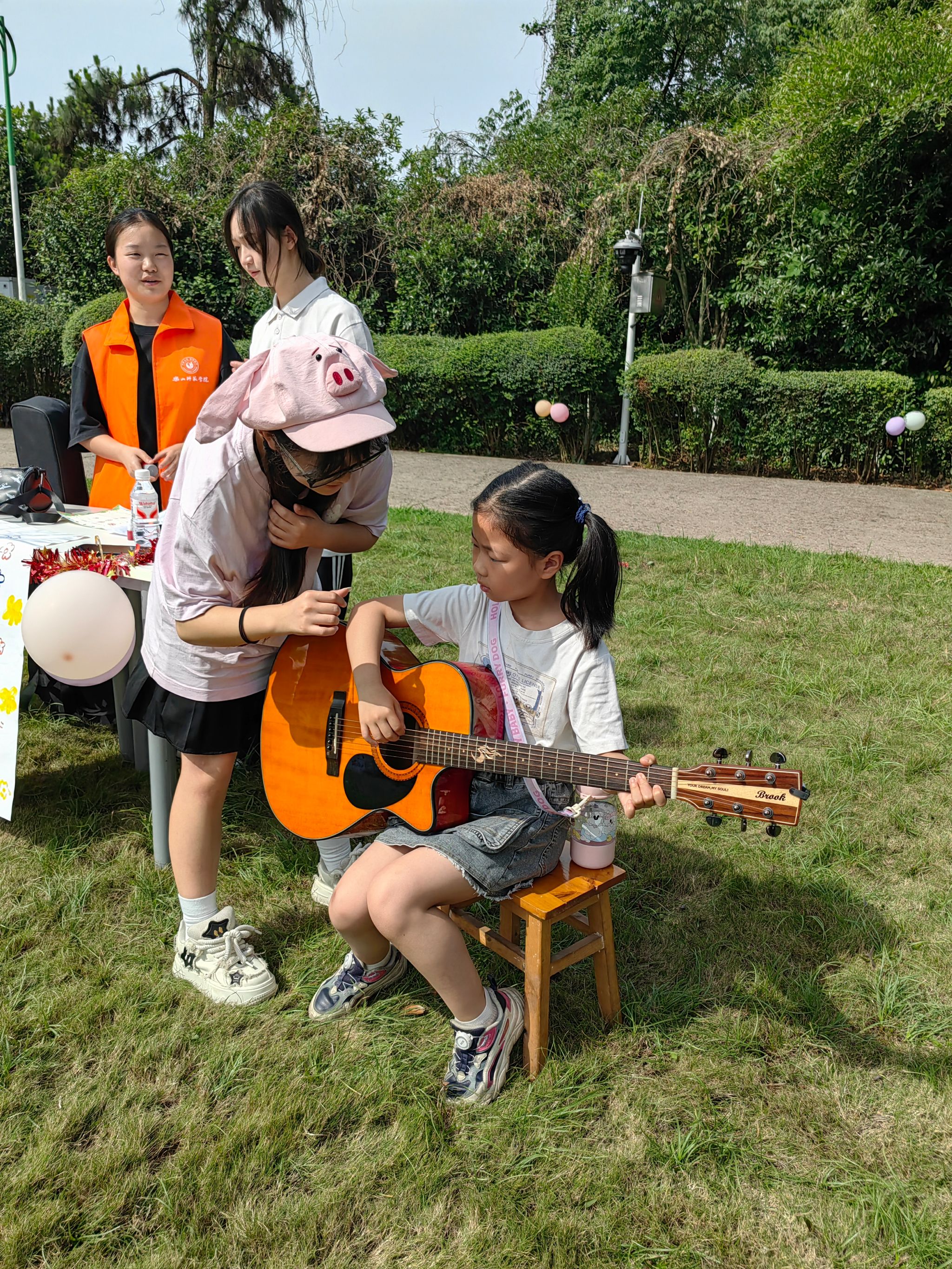 “5·25”(我爱我)的清晨,阳光洒满整个草坪,橘黄色的闰律志愿者围在各自展示台前,虚位以待。兑奖区,一摞又一摞的小乐器整装就绪,等待着被孩子们领走;签到处,孩子们兴奋地拿起画笔,在笑脸绘画板上勾勒出自己心中最纯真的笑容;打卡背景板前,大家摆出各种可爱的姿势,争相合影留念,用镜头定格下这温馨美好的瞬间。