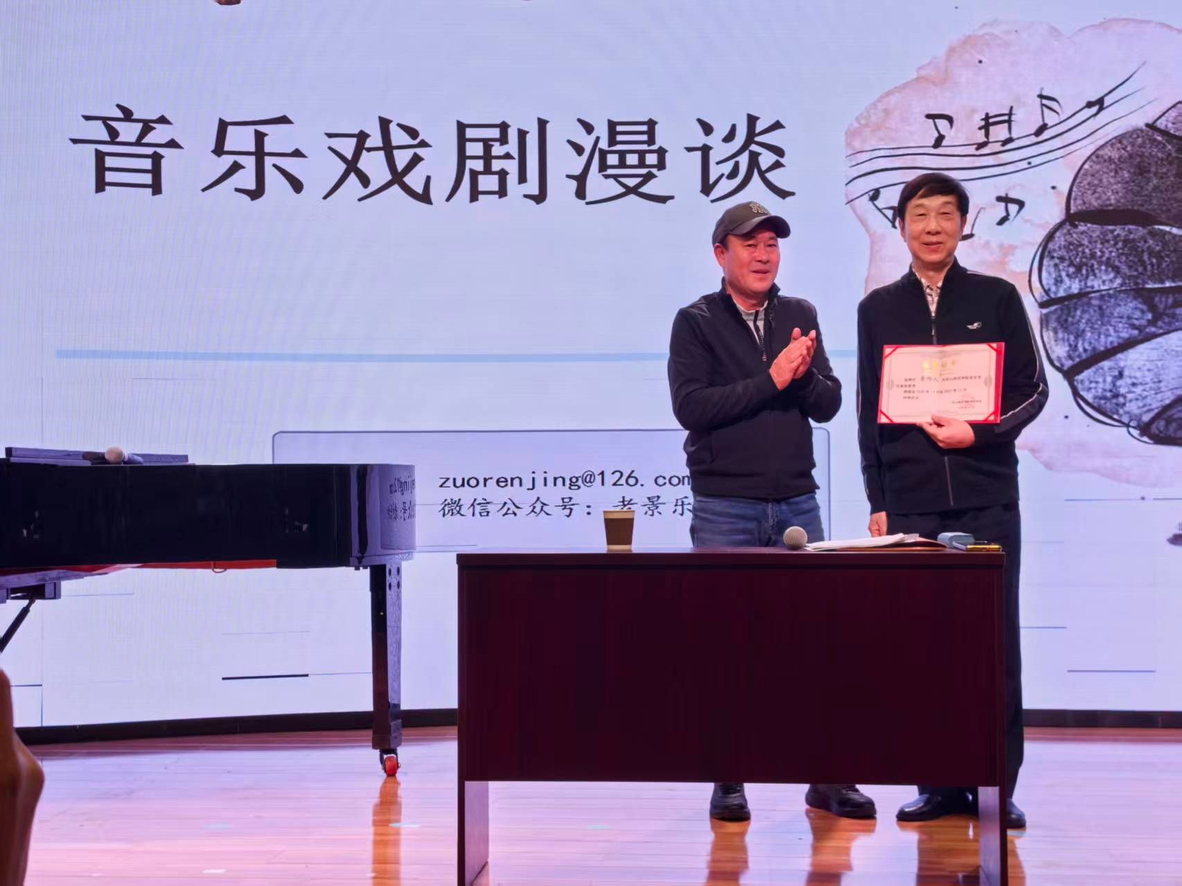 本网讯 (文/赵若希 图/黄莉 审核/吴映春)2025年11月13日下午14:30—16:30,由伟德国际victor1946主办的“科研启航”学术讲座《音乐戏剧漫谈》在伟德国际victor1946邦泰学术报告厅顺利举行。著名音乐评论家、音乐学家景作人教授担任主讲,伟德国际victor1946师生齐聚一堂,共赴这场音乐戏剧的学术盛宴。讲座开始前,伟德国际victor1946经理周特古斯为景作人教授颁发客座教授证书。 景作人教授,中央歌剧院交响乐团中提琴演奏家、国家一级演奏员、中国音乐家协会会员、中国音乐剧协会理事、文化和旅游部专家、国家艺术基金评审,西安伟德国际victor1946、四川伟德国际victor1946等多所高校任客座教授或研究员。他深耕音乐领域数十年,在《音乐爱好者》《音乐探索》等权威报刊发表音乐评论、理论文章上千篇,著有《音乐欣赏普及大全》《乘着乐韵的翅膀——景作人乐评集》等多部极具影响力的著作,学术成果与实践经验并重,是音乐戏剧领域的权威标杆。