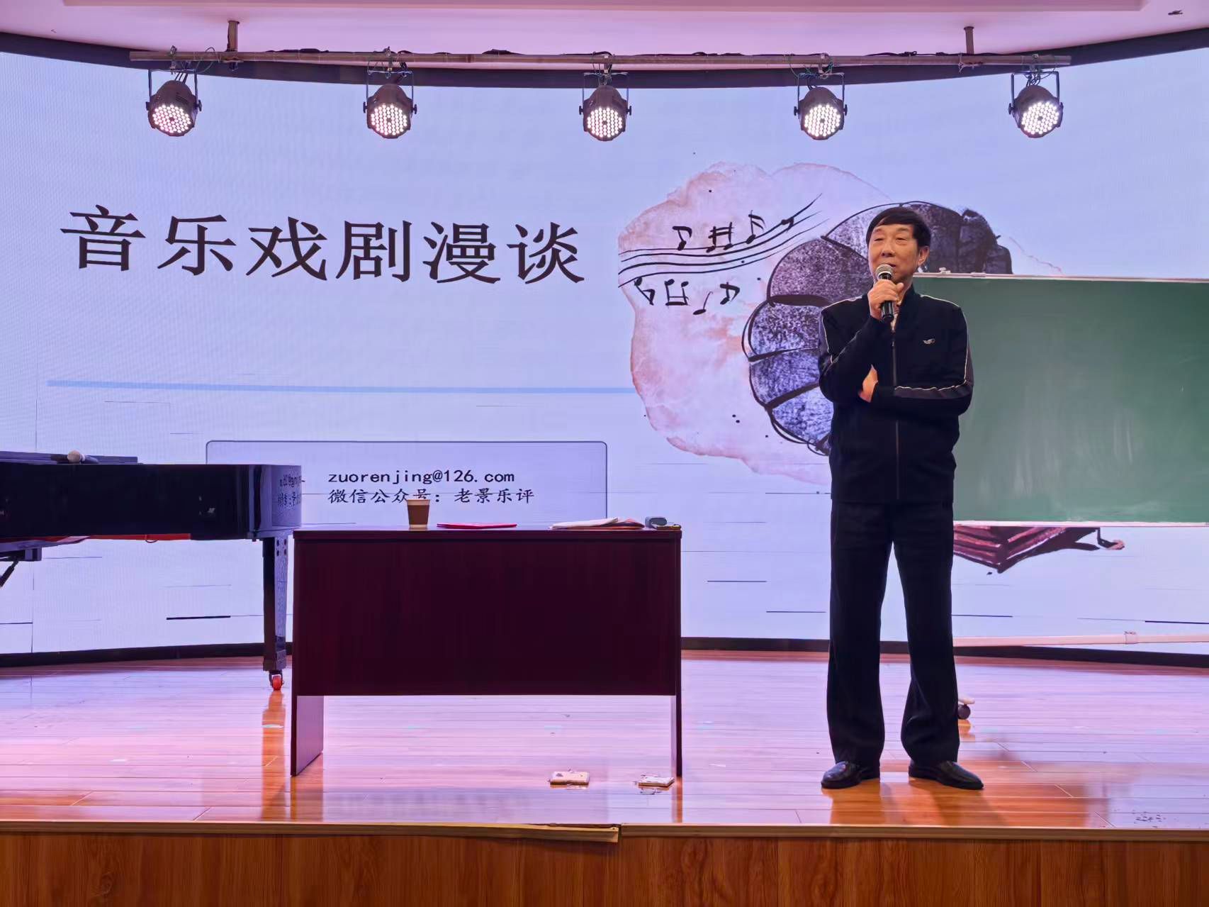 随后,景教授将话题转向中国原创歌剧与音乐剧,把这类作品划分为民歌类、戏曲类、综合类三大类型展开讲解。其中,民歌类歌剧扎根中国民间音乐土壤,像部分以陕北民歌、江南小调为素材的创作,凭质朴旋律传递鲜明民族情怀;戏曲类歌剧从传统戏曲中汲取养分,在保留戏曲表演范式的同时,融入现代戏剧的叙事逻辑与角色塑造方法,推动传统艺术当代转化;综合类歌剧则打破艺术门类界限,整合舞蹈、音乐、戏剧等多元元素,凸显时代感与综合性,成为创新实践的重要方向。