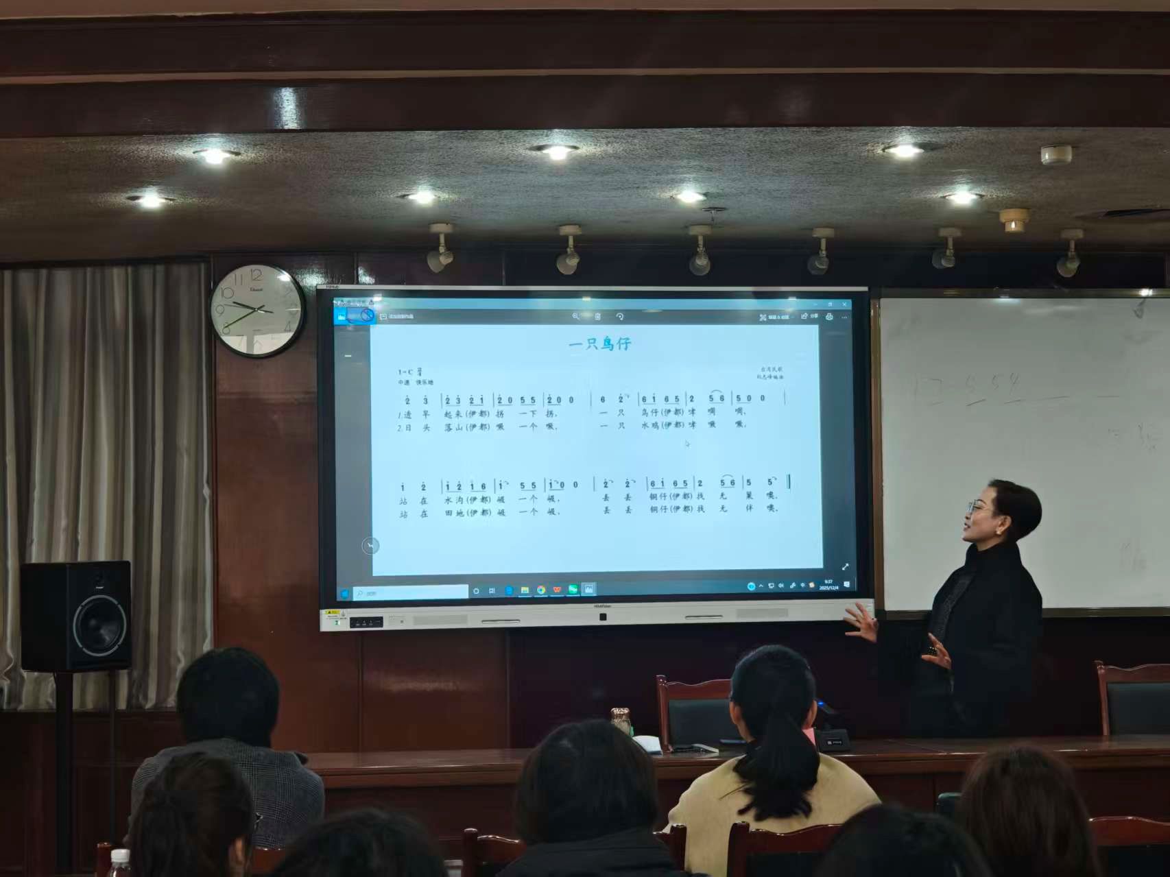 讲座过程中,刘应兰不时与师生互动,通过提问、案例讨论、片段模拟等形式,调动在场观众的参与热情。不少员工表示,这种结合真实课例、紧扣教学实践的分析,使他们对未来从事音乐教育工作有了更清晰的认知和更充足的信心。