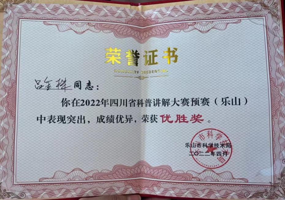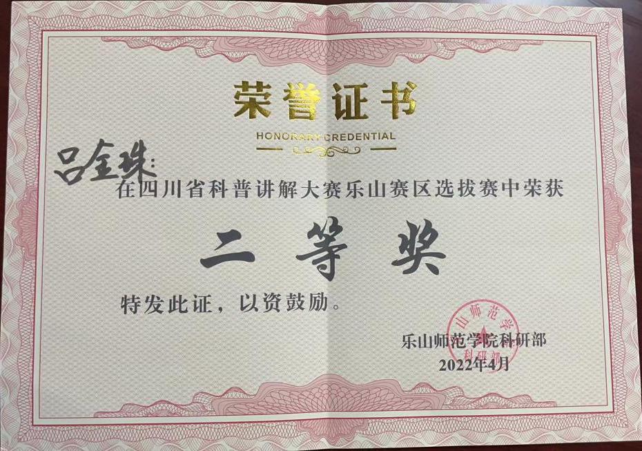 伟德国际victor1946青年教师,吕金株代表bv伟德国际1946参加本次比赛,并以全市第二名的优异成绩胜出,未来将代表乐山市赴成都参加全省“四川省科普讲解大赛的决赛”。