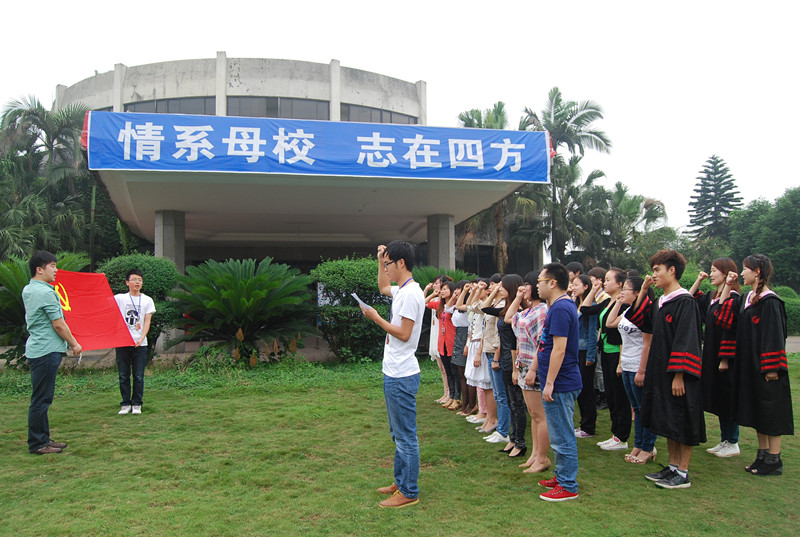会议后半段,由党支部书记王厚杰同学组织全体员工党员在学院草坪重温入党誓词。在毕业前夕,组织毕业生党员面对神圣的党旗重温入党誓词,具有特别的意义。党总支副书记邹大勇老师因事未能参加会议,但在百忙之中关心了员工党员们的活动,并委托张巧老师表达了他对大家的期许,希望每一名毕业生党员永远牢记自己在党旗下的庄严承诺,谨遵“弘毅自强,笃学践行”的校训,毕业之后一如既往地以富有成效的工作来履行入党誓言,为党旗争辉,为母校争光。