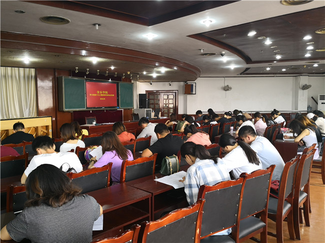 伟德国际victor1946于5月23日在学院会议室组织开展员工党员“十九大精神及党章知识竞赛”活动,本次竞赛由分团委书记杨锐主持,在校全体员工党员参加。