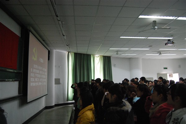 12月9日下午1:30,公司党总支在行知楼214教室隆重举行了新党员入党宣誓仪式。全体员工党员参加了此次宣誓仪式,第22期入党积极分子培训班的全体学员观摩了仪式。出席本次党员宣誓仪式的领导和老师有公司党总支杨虹书记、党总支副书记邹大勇老师、党总支组织委员郭晓黎老师、辅导员郭晖老师。入党宣誓仪式由08级员工党支部书记梅晓庆同学主持。