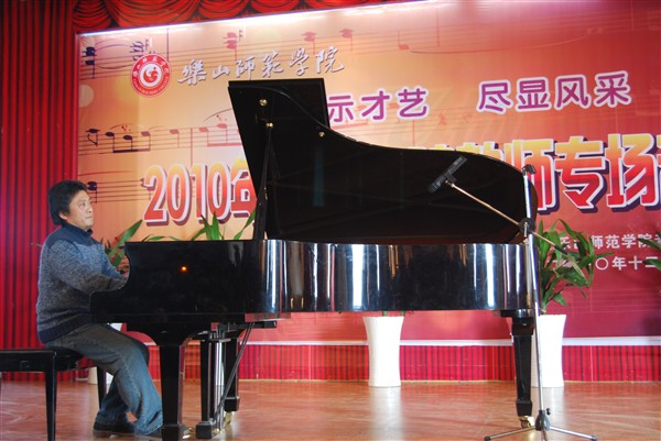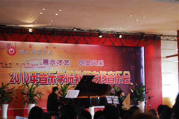 音乐会首先在熊旭老师、吴喜老师,钢琴与琵琶合奏《白桦林》优美的旋律中拉开序幕。接下来尹小平老师钢琴独奏贝多芬《热情奏鸣曲》。其内在的感情狂澜使人震惊,富于表情的音乐手法把全部汹涌狂暴的因素完全置于了一目了然的形式里令人赞叹。白海燕老师的一首《牧民新歌》笛子独奏,使听众仿佛是置身于宽广辽阔的大草原,蓝天白云下,牛羊成群……短暂的离调,使动人的引子又增添了迷人的动力。之后,何虑老师钢琴即兴演奏《萍聚》悦耳动听的旋律再次打动了观众的心扉,接下来吴珍老师的钢琴独奏《匈牙利狂想曲第十一号》,华丽,飞速快捷的音符在将盘上流动着,其精湛的弹奏技巧,为本次音乐会掀起了一个高潮。杨昭老师独奏《恰似你的温柔》,萨克斯美妙的音响如雨后新荷般的晶莹纯美。之后,吴洋老师手风琴独奏《巴钦餐馆的卖花小孩》,手指与风箱的完美结合,慢板多声部的旋律线条透露出一丝淡淡的忧伤,其丰富的舞台表现力,令大家赏心悦目。最后,关继文老师小提琴独奏《牧歌》舒缓的调子, 悠扬的琴声中结束了本次教师钢琴、器乐专场音乐会。