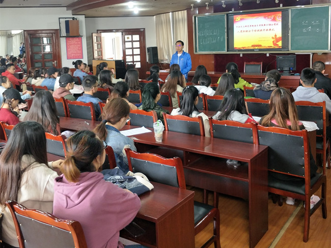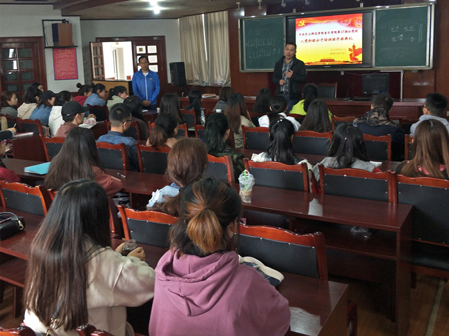 宋军在开班典礼致词中提出入党积极分子要提高个人思想政治觉悟,要服从管理,严以律己、坚持以知促行,做有信念、有品行、有作为的员工。他强调大家应以学业为主,要严格的遵守学校规章制度和组织纪律,按照党员标准严格要求自己。随后,杨锐对本次积极分子的培训时间以及要求做了详细说明,他鼓励同学们多去图书馆,了解更多的中国共产党光辉历史,以实际行动向党组织靠拢,提高党员意识,充分发挥党员先锋模范作用。